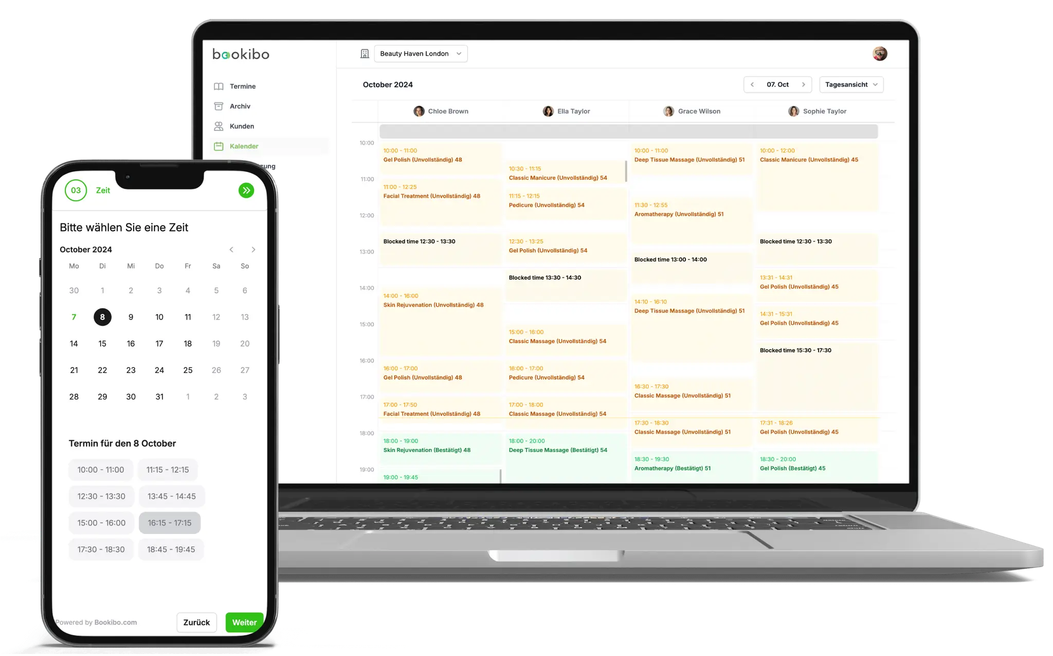 Bookibo ist eine Terminverwaltungssoftware für die Beauty- und Wellnessbranche, wie Friseure, Spas, Massagetherapeuten, Haar- und Nagelstudios und andere Schönheitsprofis.